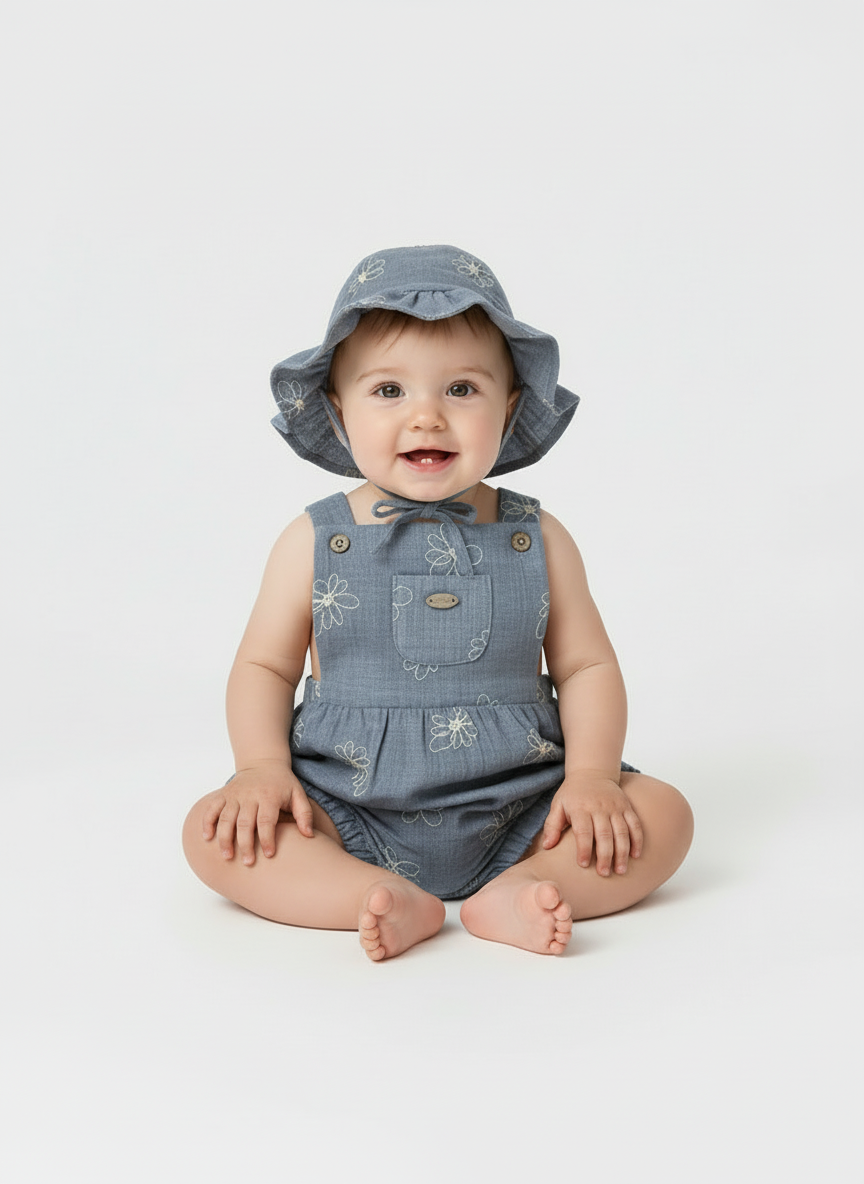 Salopette con cappello neonata Mayoral Newborn jeans ricamato