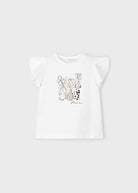 T-Shirt bambina Mayoral applicazini paillettes fiori panna