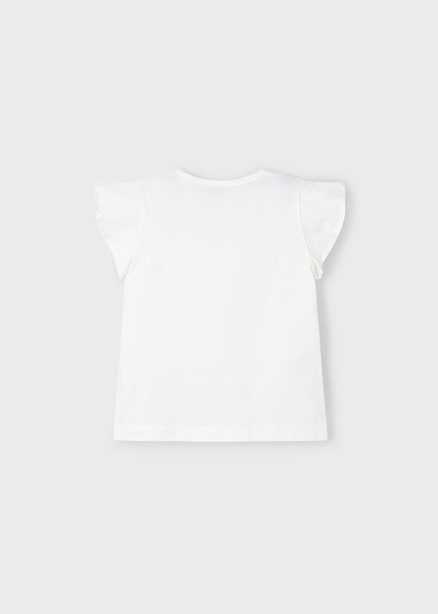 Maglietta manica corta con volant per bambina. Elementi decorativi: disegno nella parte anteriore. Scegliendo i nostri prodotti in cotone, supporti il nostro impegno nell'iniziativa Better Cotton.
