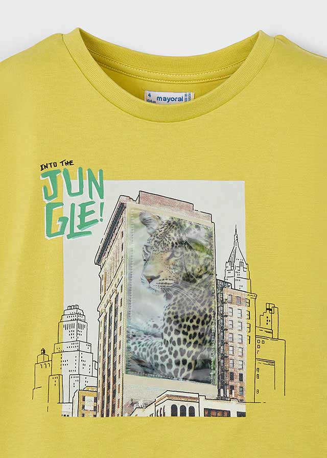 T-Shirt bambino Mayoral stampa lenticolare Leopardo gialla