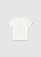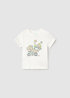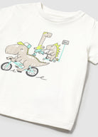 T-Shirt neonato Mayoral "Dinosauri in bici" panna