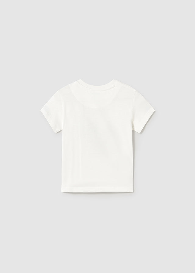 Maglietta manica corta per neonato. Girocollo. Bottone a pressione sul colletto per facilitare la vestibilità del capo. Elementi decorativi: Serigrafia (print)