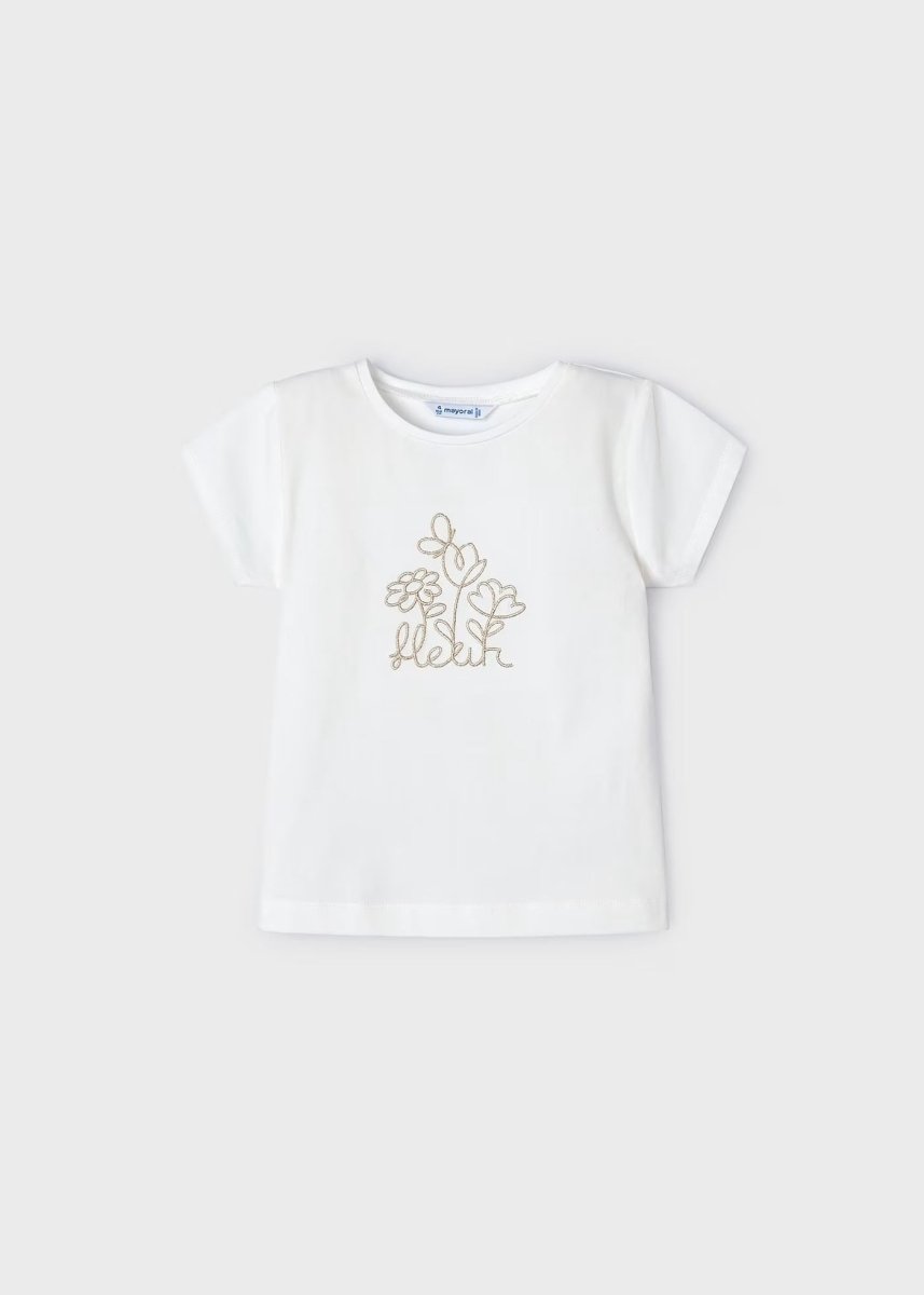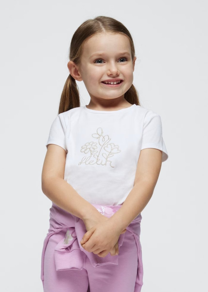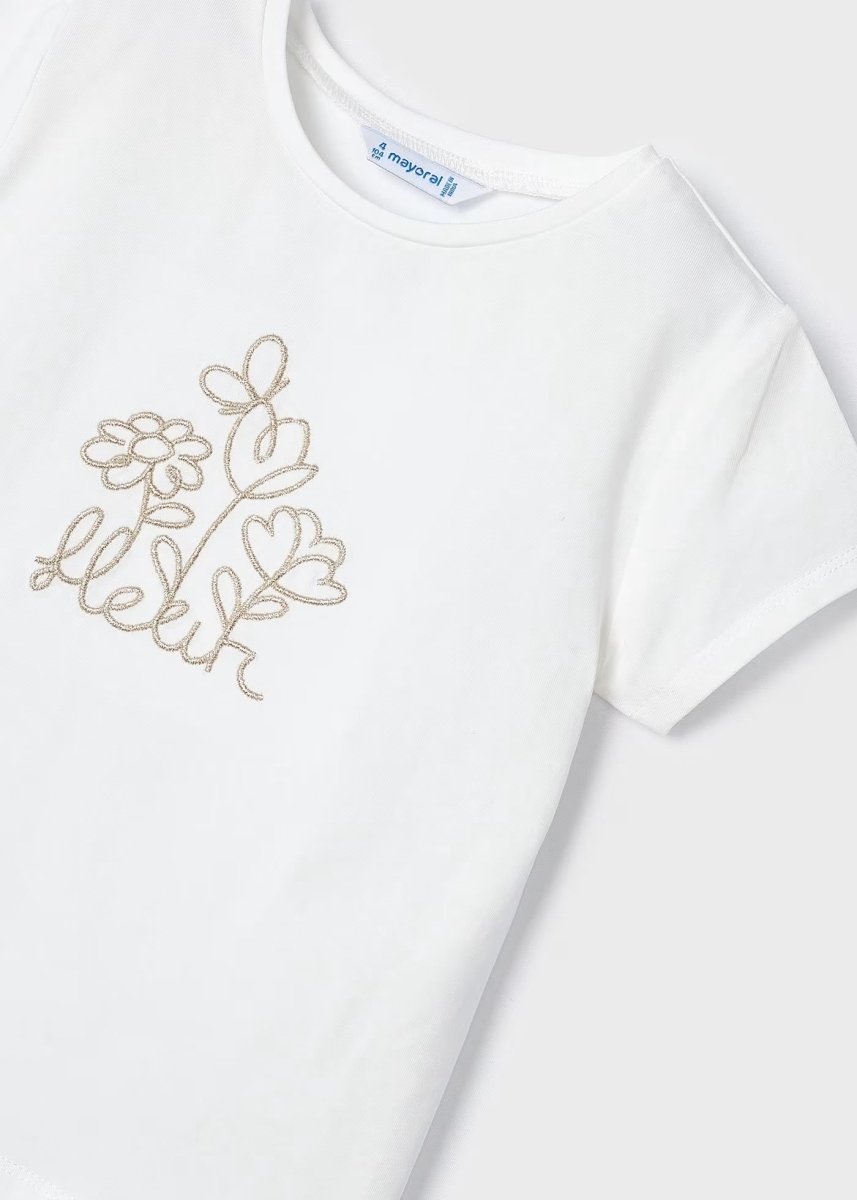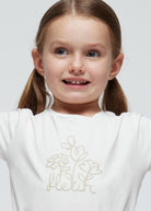 Mayoral White "Flower" Fresh Cotton Embroidered T-Shirt for Girls