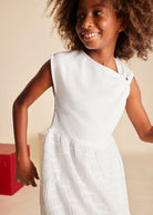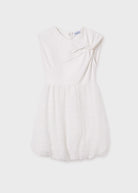 Vestito combinato nodo ragazza Mayoral panna