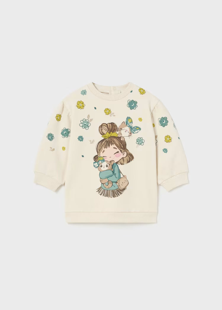 Mayoral cecio baby girl warm cotton maxi sweatshirt printed dress