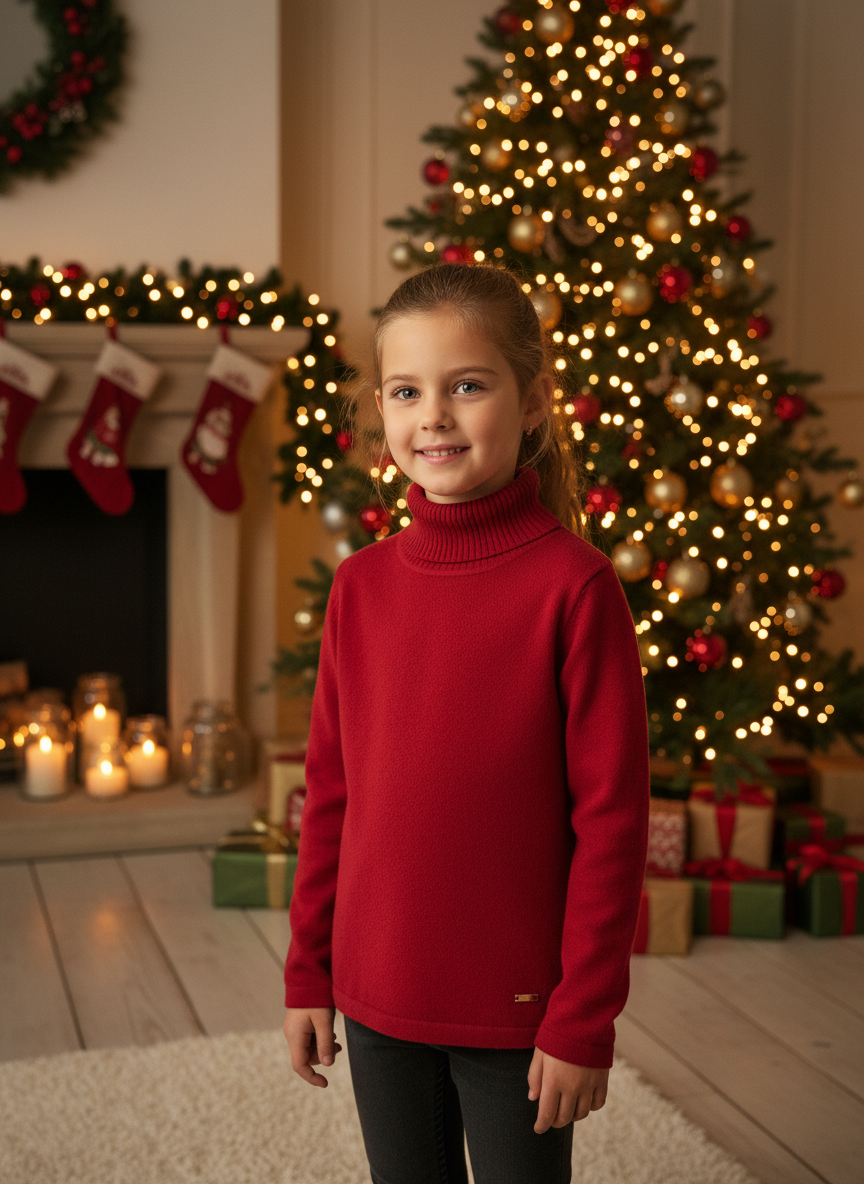 Col roulé basique rouge en coton chaud Mayoral pour filles