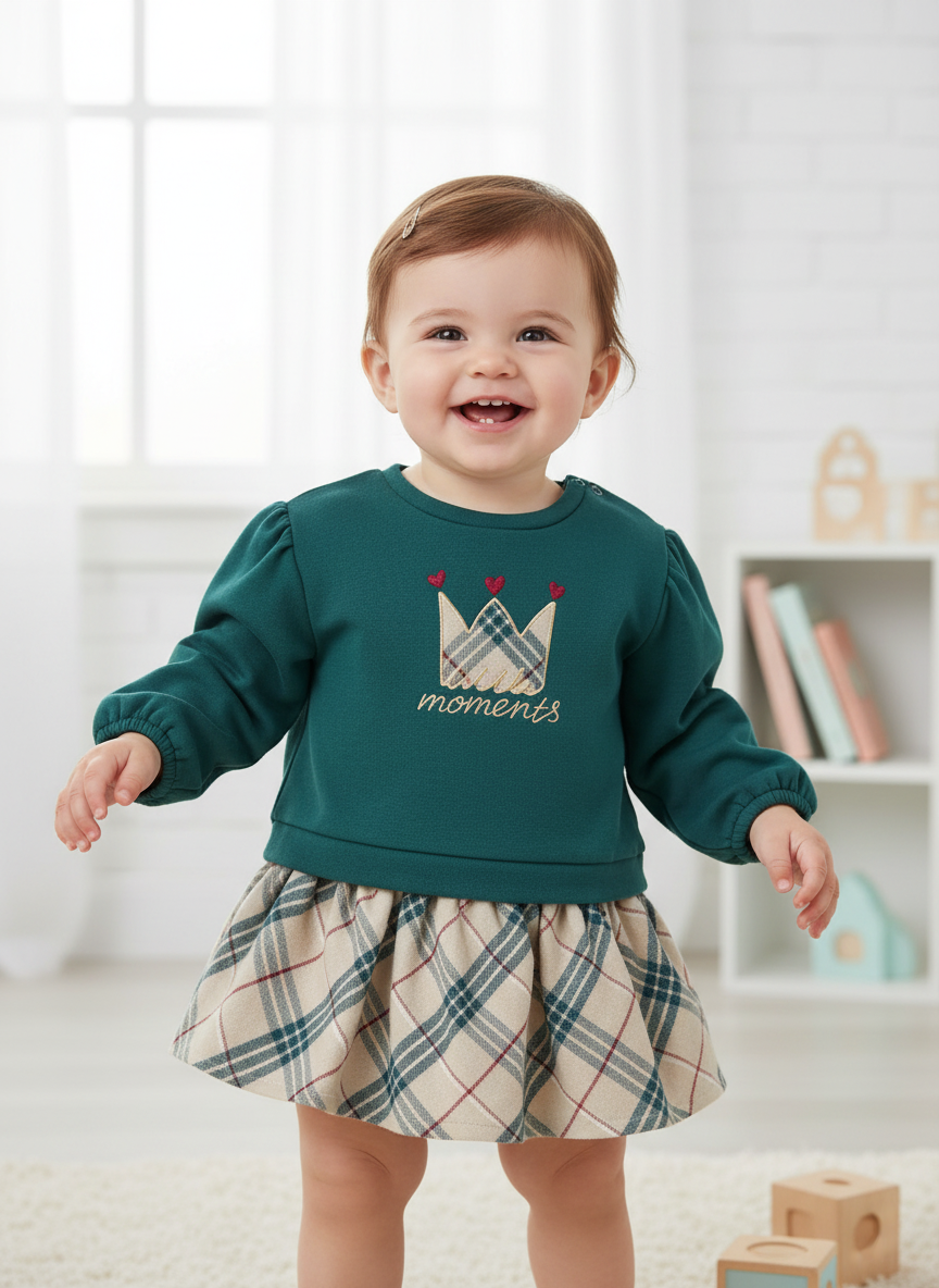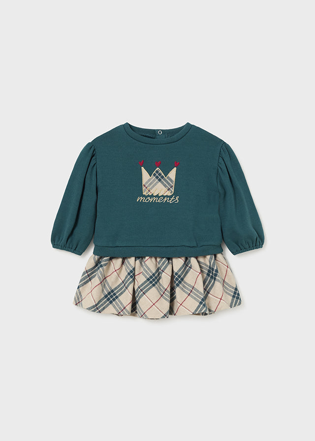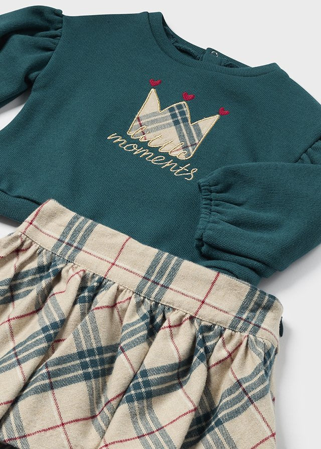 Ensemble jupe et sweat-shirt à carreaux verts et beiges Mayoral pour bébé fille