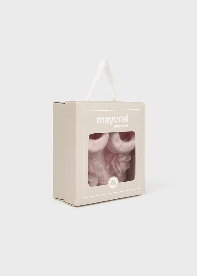 Ensemble bandeau et chaussettes roses à fleurs Mayoral pour nouveau-né