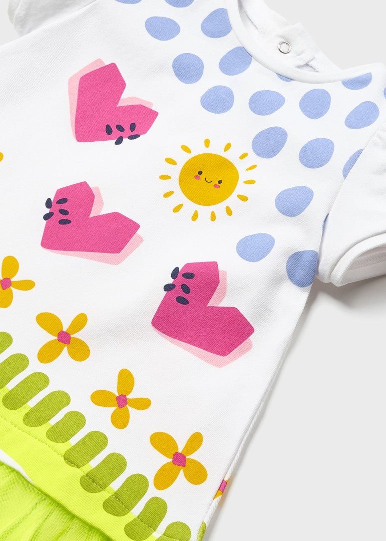 Robe en coton pour bébé fille Mayoral, ornée de volants en tulle vert citron