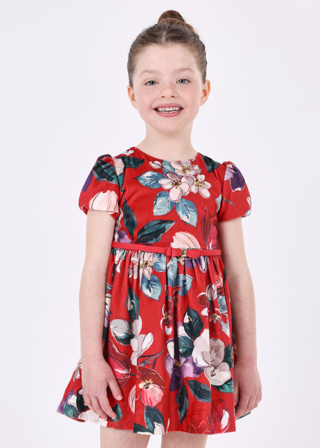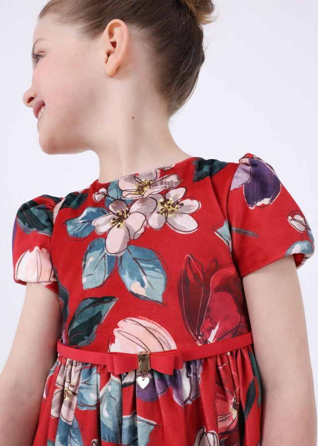 Robe Mayoral en velours rouge imprimé floral pour filles