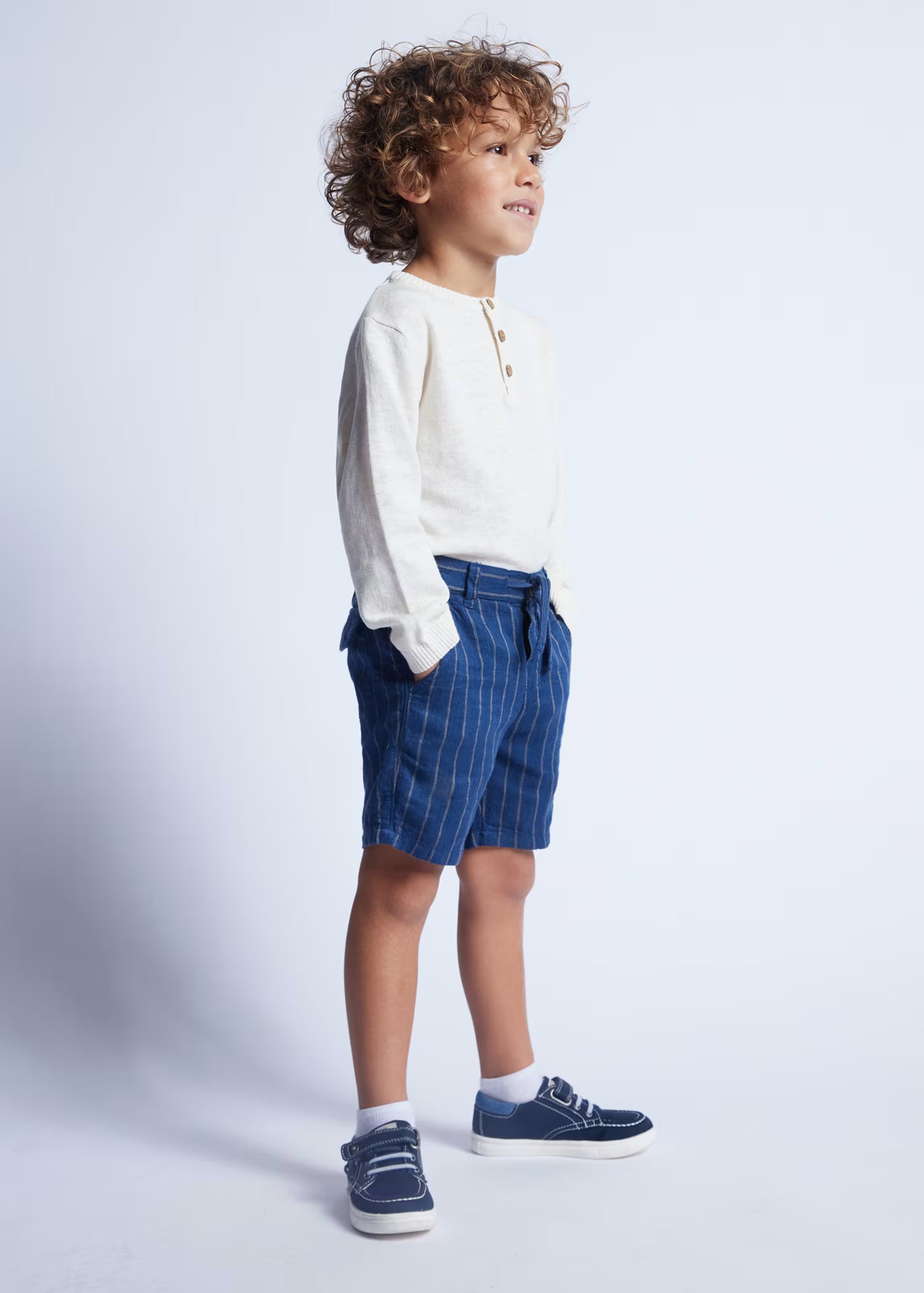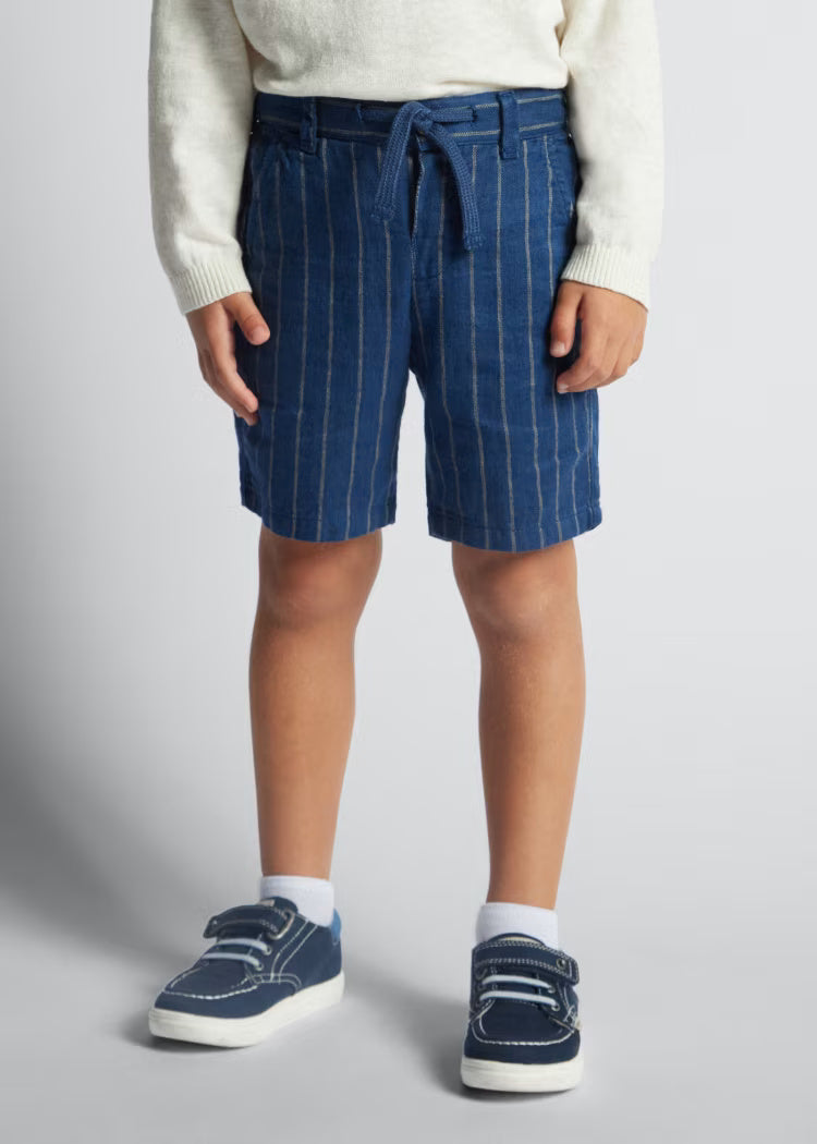 Bermudas en lin rayé bleu indigo pour enfants, modèle Mayoral