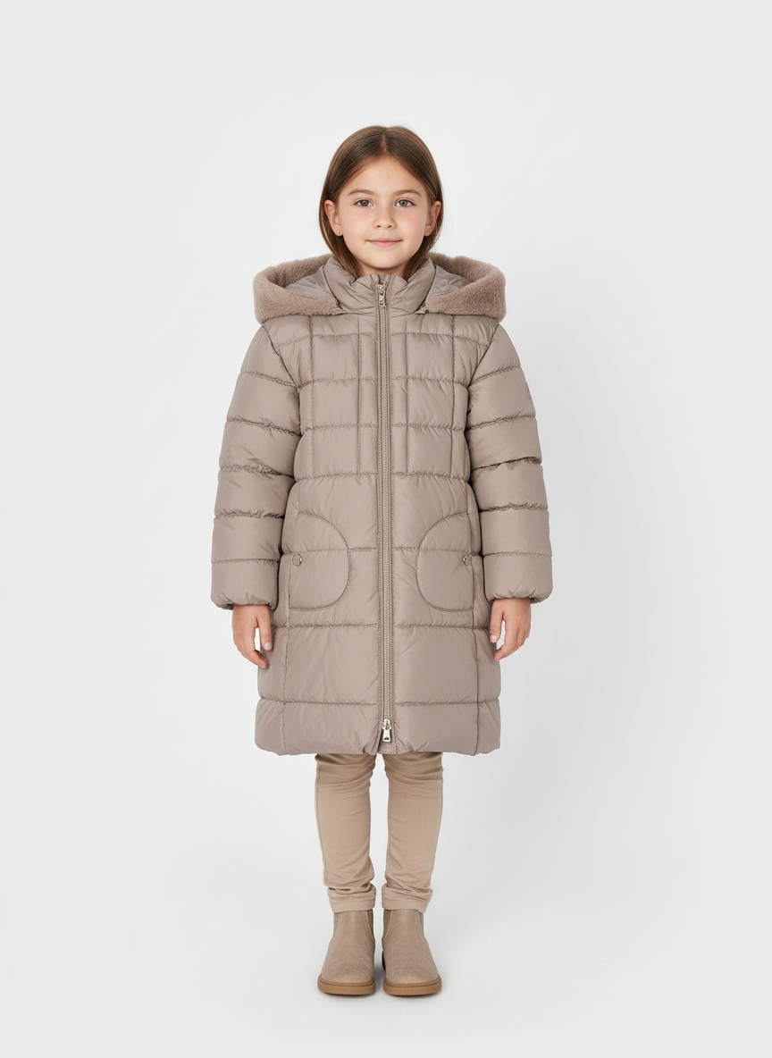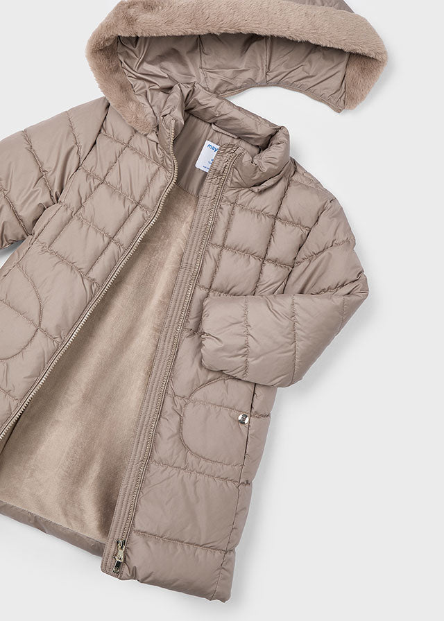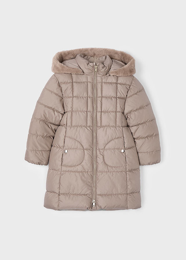 Veste longue pour fille Mayoral avec capuche amovible, gris tourterelle