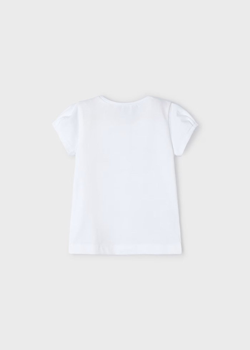T-shirt blanc imprimé pour filles de la mairie, orné de fleurs en tulle fuchsia