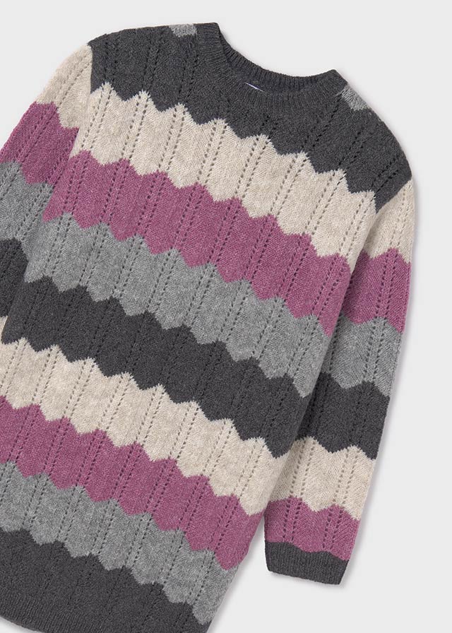 Robe en maille tricot douce pour filles Mayoral, à motifs gris et mauve