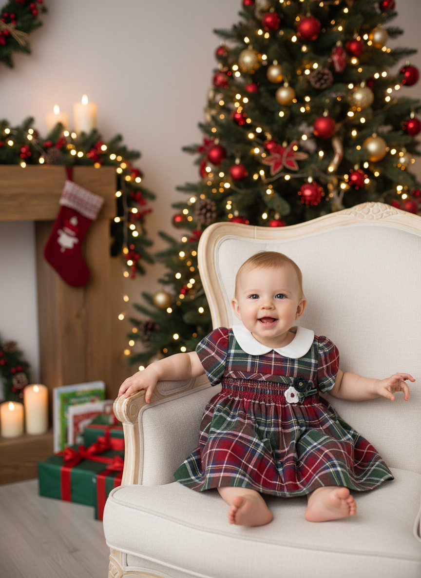 Abito maniche corte neonata Mayoral Newborn quadri rosso e verde