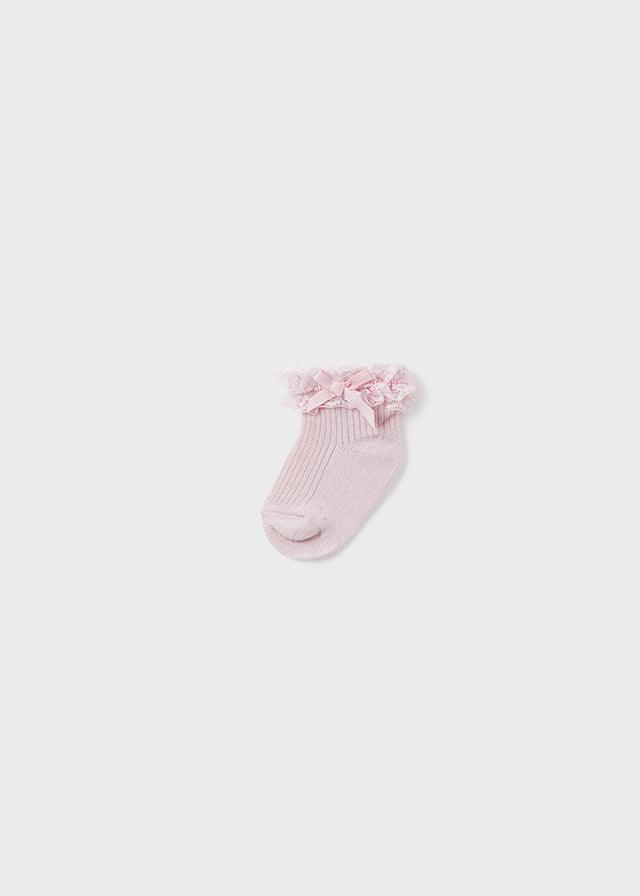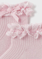 Calzini con volant in pizzo rosa di Mayoral aggiungono un tocco delicato e sofisticato agli outfit della tua bambina. Con volant in pizzo e un delicato colore rosa, sono perfetti.