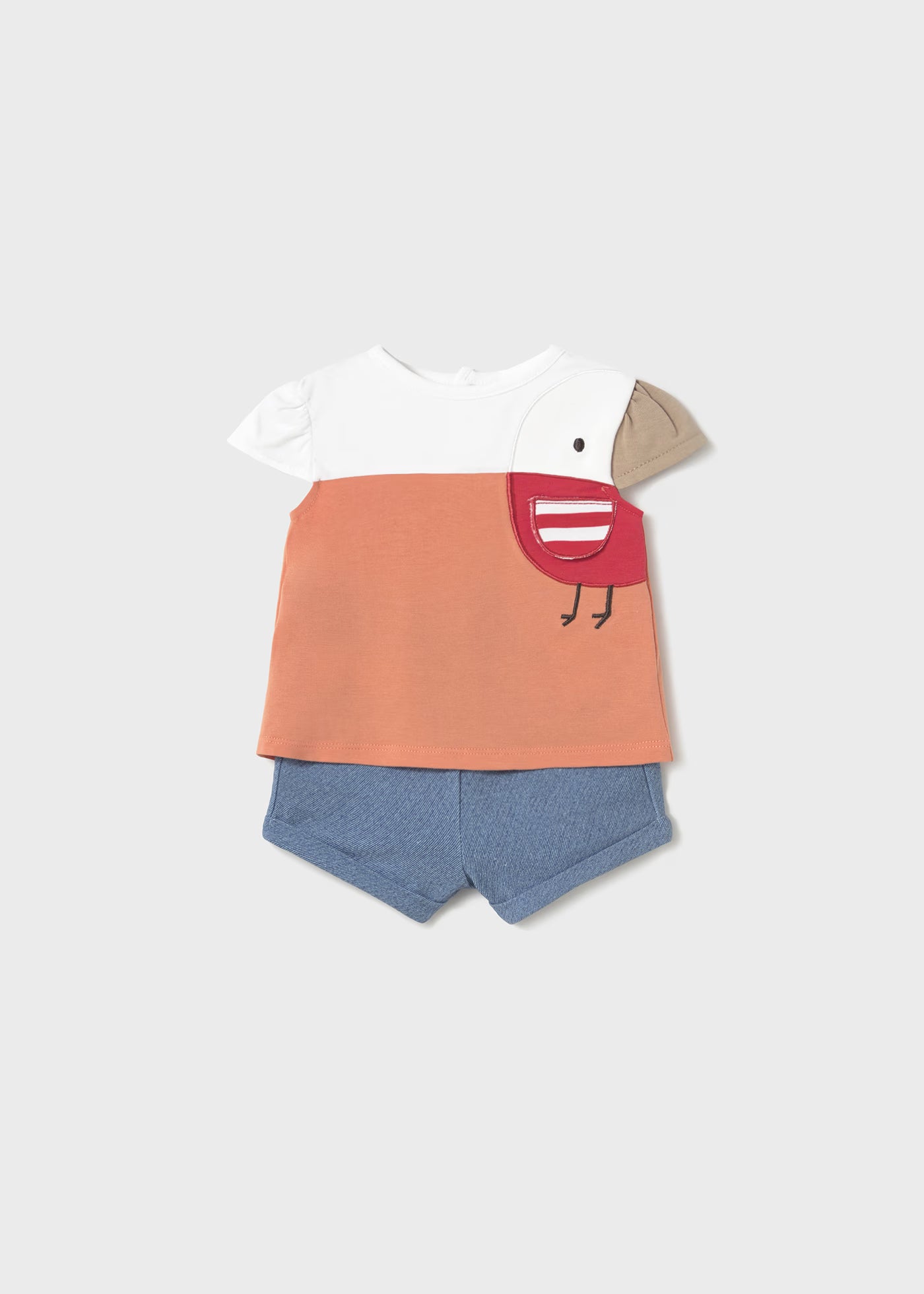 Completo estivo neonata Mayoral Newborn "Uccelino" pompelmo