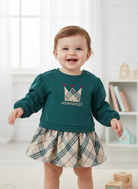 Completo gonna quadri e felpa neonata Mayoral verde e beige