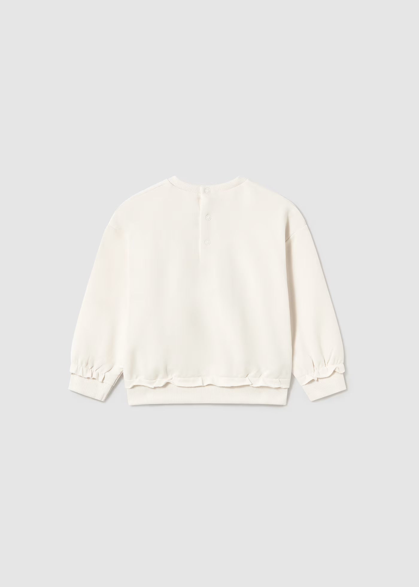 Felpa manica lunga per neonata. Chiusura con bottoni sulla schiena per facilitare la vestibilità del capo. Design stampato. Scegliendo i nostri prodotti in cotone, supporti il nostro impegno nell'iniziativa Better Cotton. Il cotone Better Cotton è ottenuto attraverso un sistema di bilancio di massa e non può essere fisicamente ricondotto ai prodotti finali. tuttavia, i produttori di cotone beneficiano della domanda di Better Cotton in volumi equivalenti.