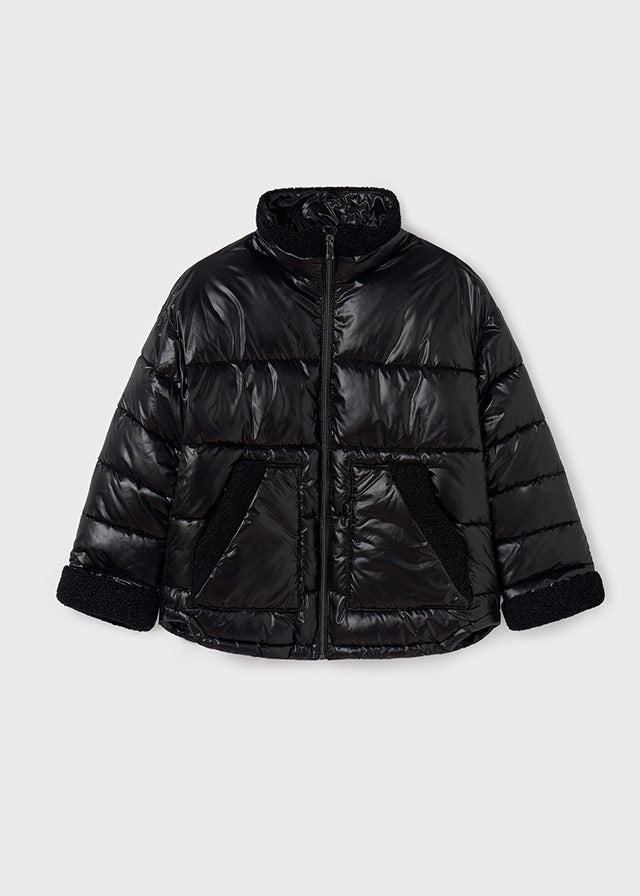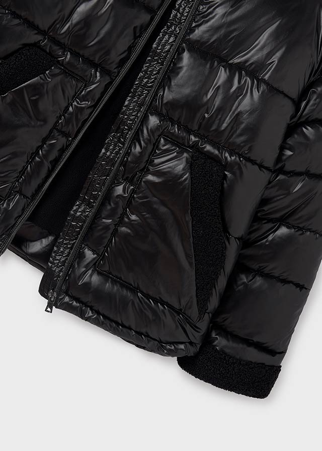 Giubbino dettaglio pellicciotto ragazza Mayoral nero lucido