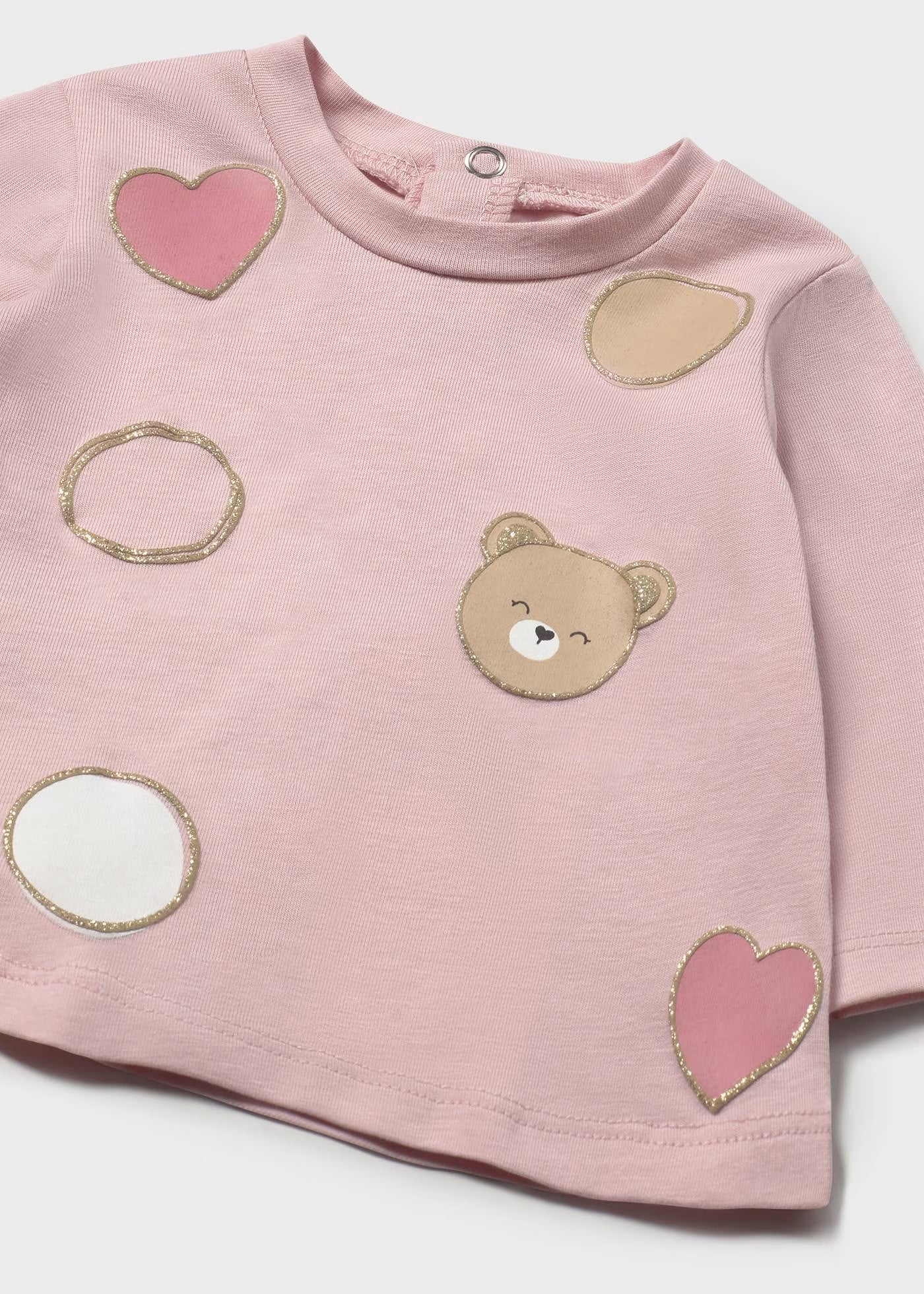 Maglietta manica lunga neonata Mayoral "teddy" rosa