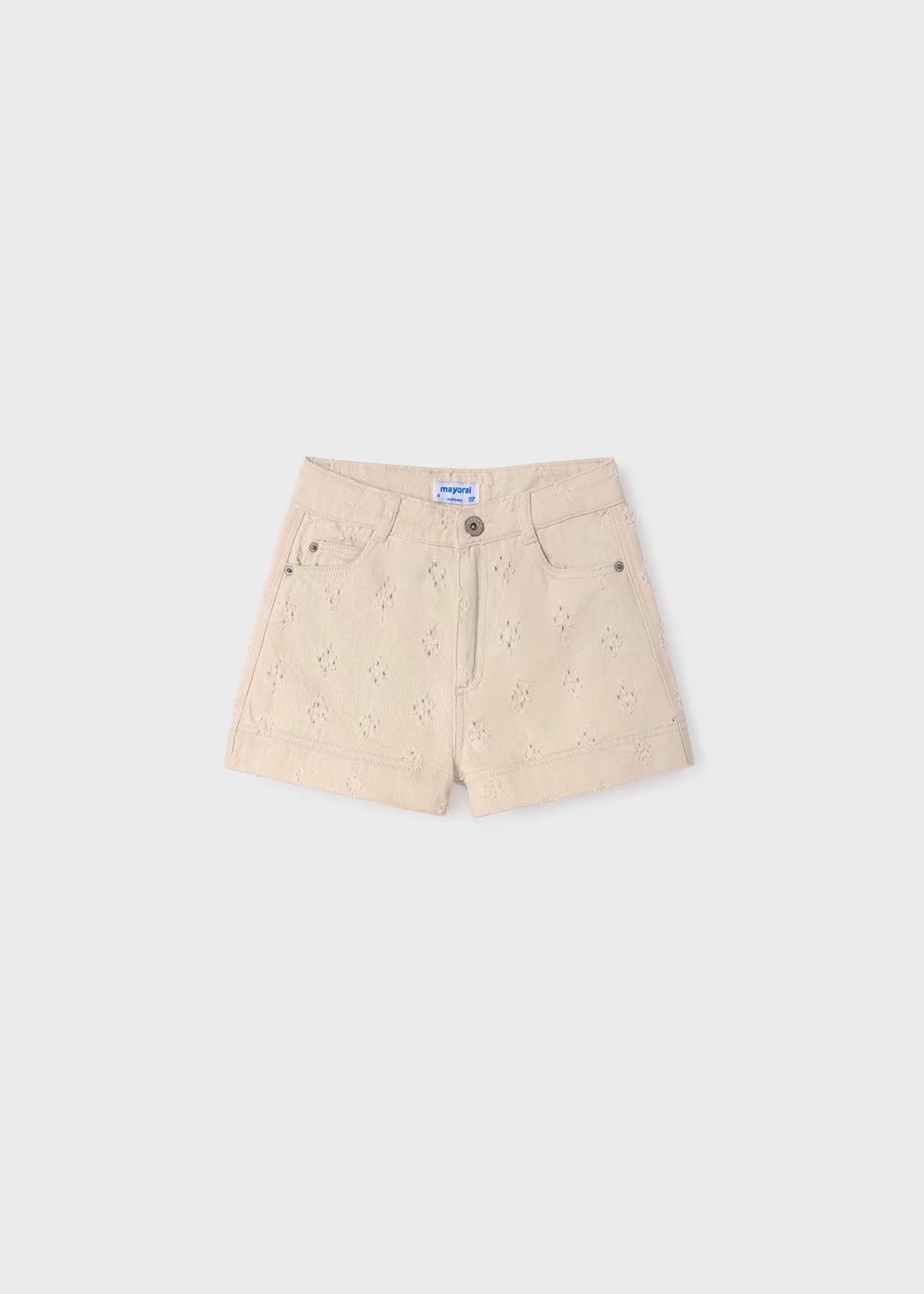 Pantaloncino in tela ragazza Mayoral fantasia color mandorla