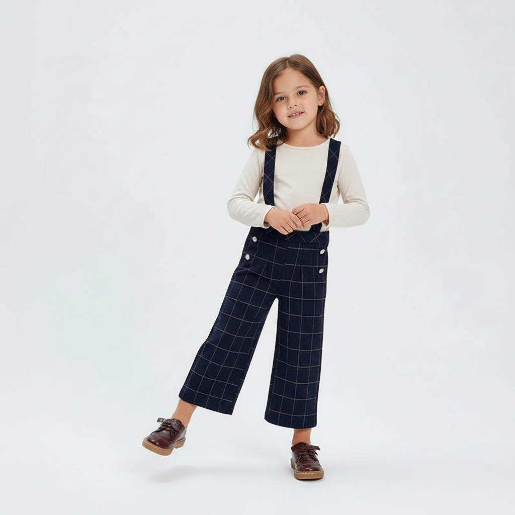 Pantalone culotte quadri con bretelle bambina Mayoral