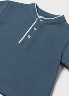 Polo manica corta per neonato. Modello con colletto alla coreana ton sur ton. Chiusura con bottoni. Morbido tessuto di cotone elasticizzato. Scegliendo i nostri prodotti in cotone, supporti il nostro impegno nell'iniziativa Better Cotton.