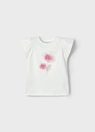 T-Shirt bambina Mayoral fiore rosa rilievo panna
