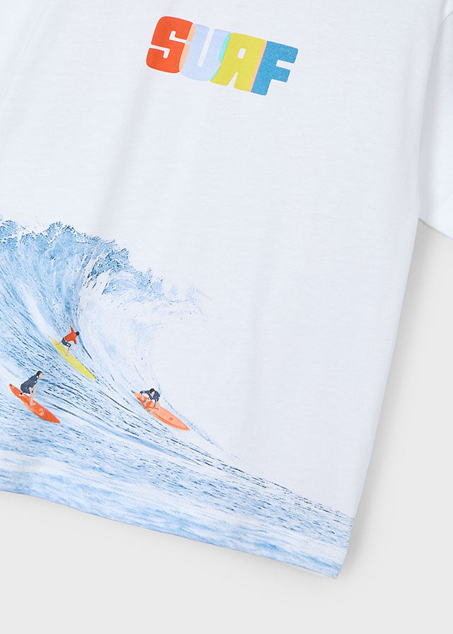 T-Shirt bambino Mayoral bianca stampa "onda surf"