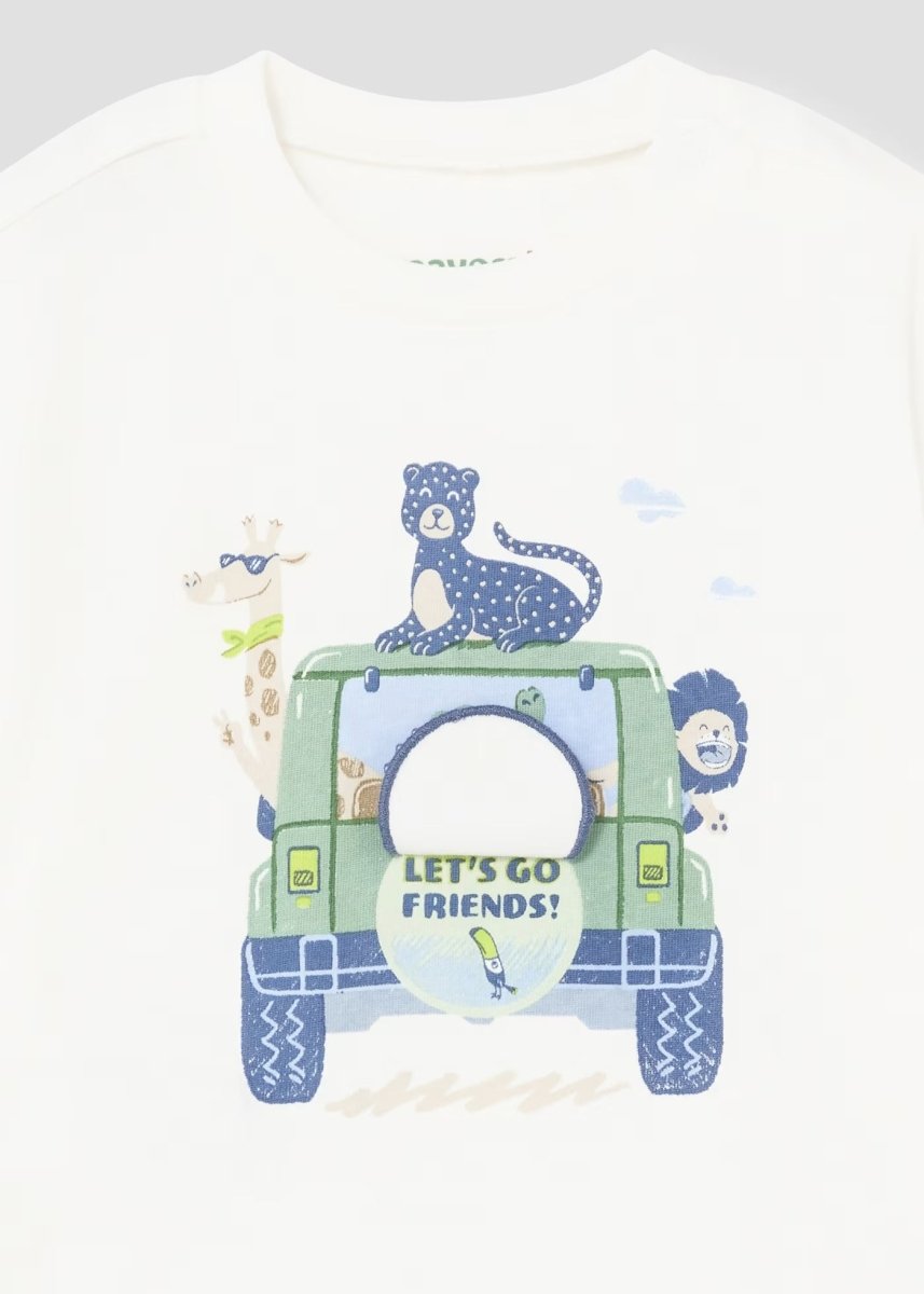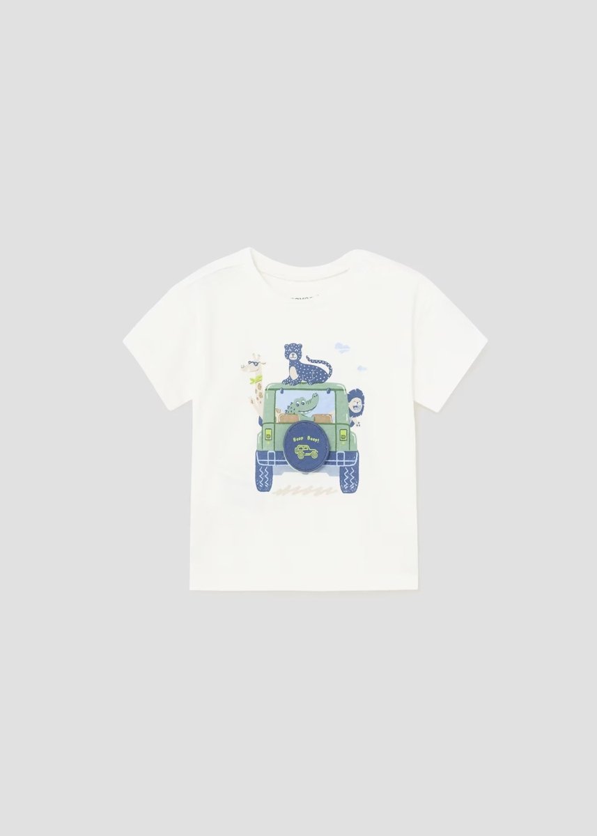 T-Shirt interattiva fresco cotone neonato Mayoral "Beep Beep" bianca