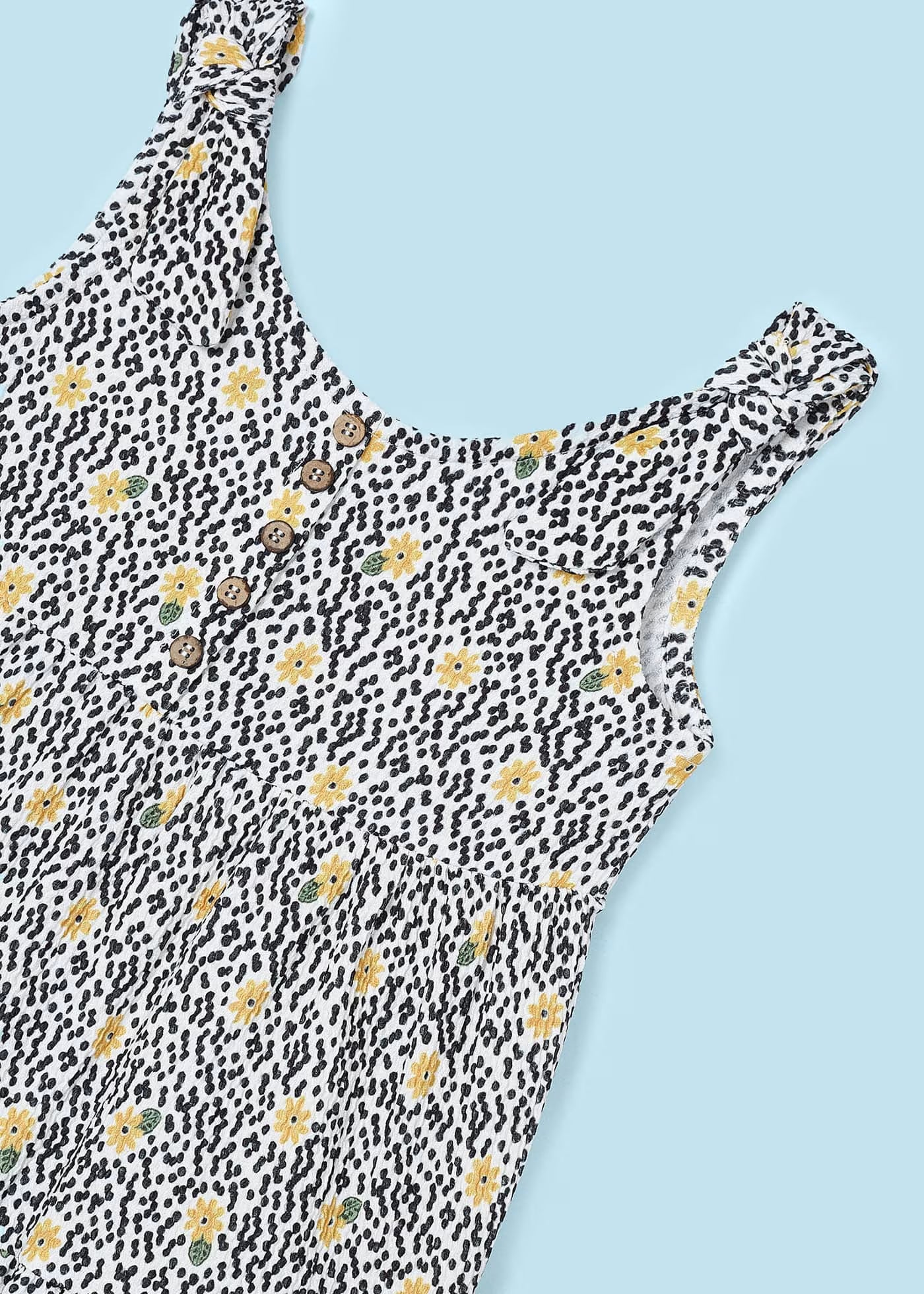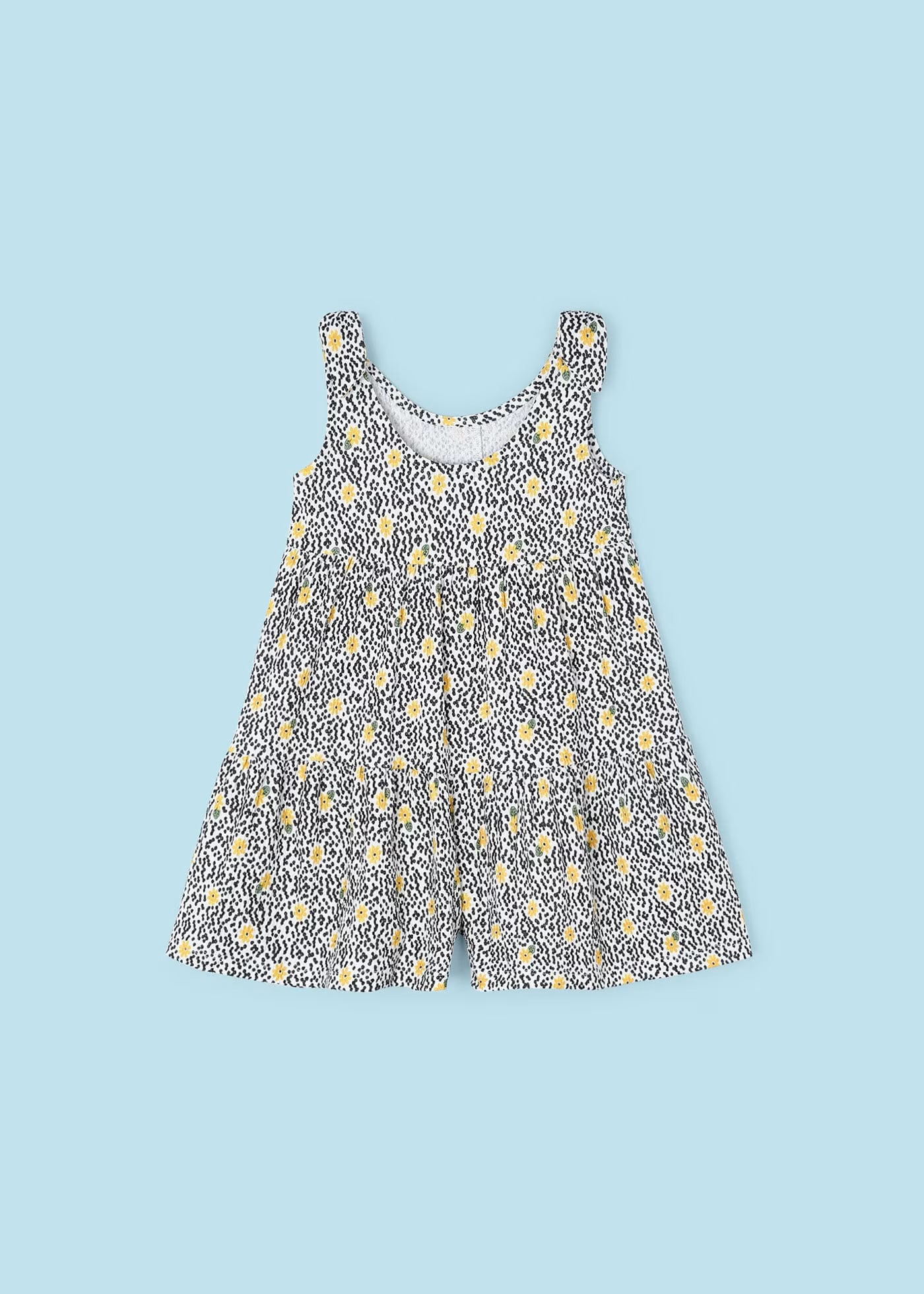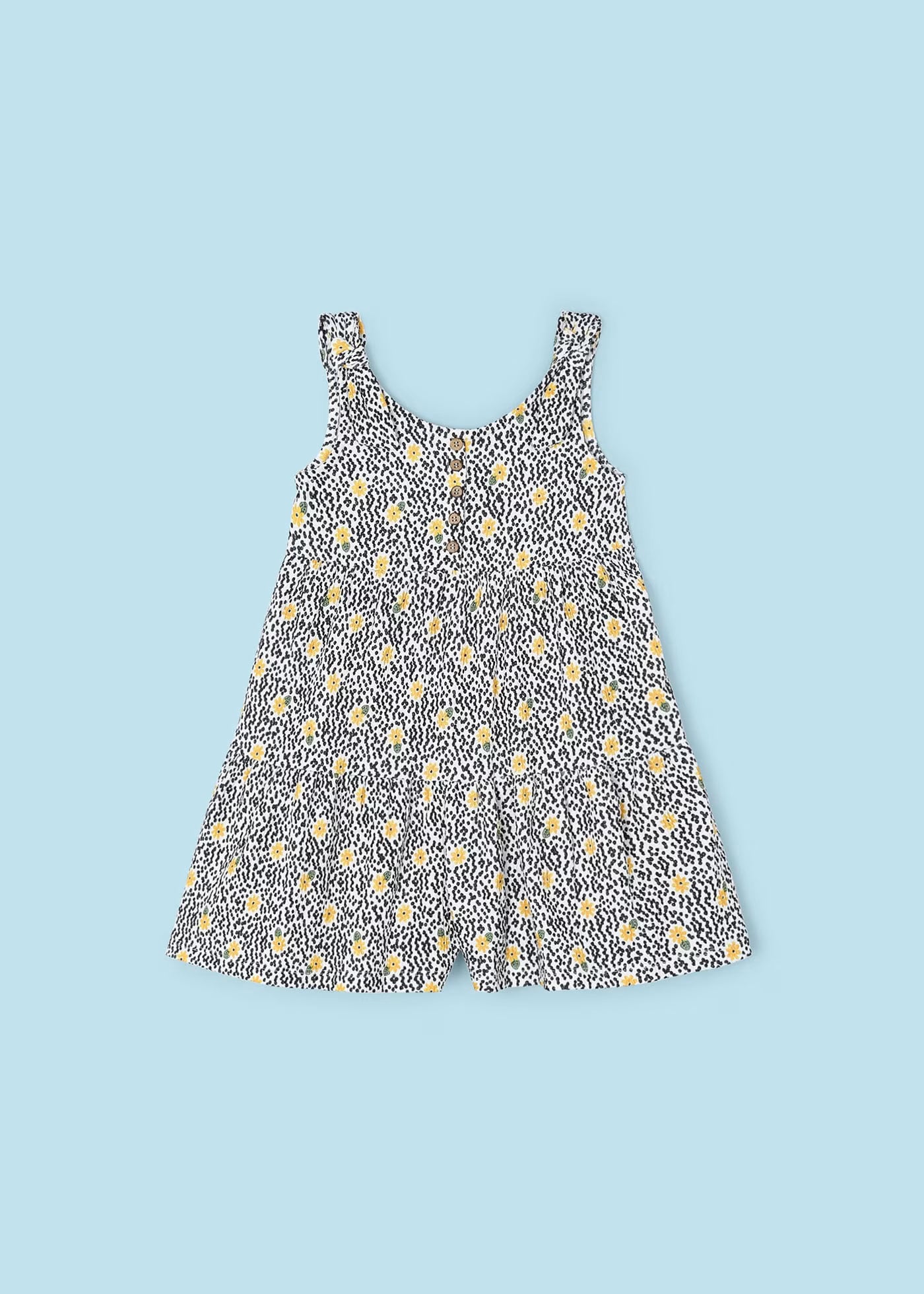 Tuta con bretelle annodate bambina Mayoral fantasia fiori gialli