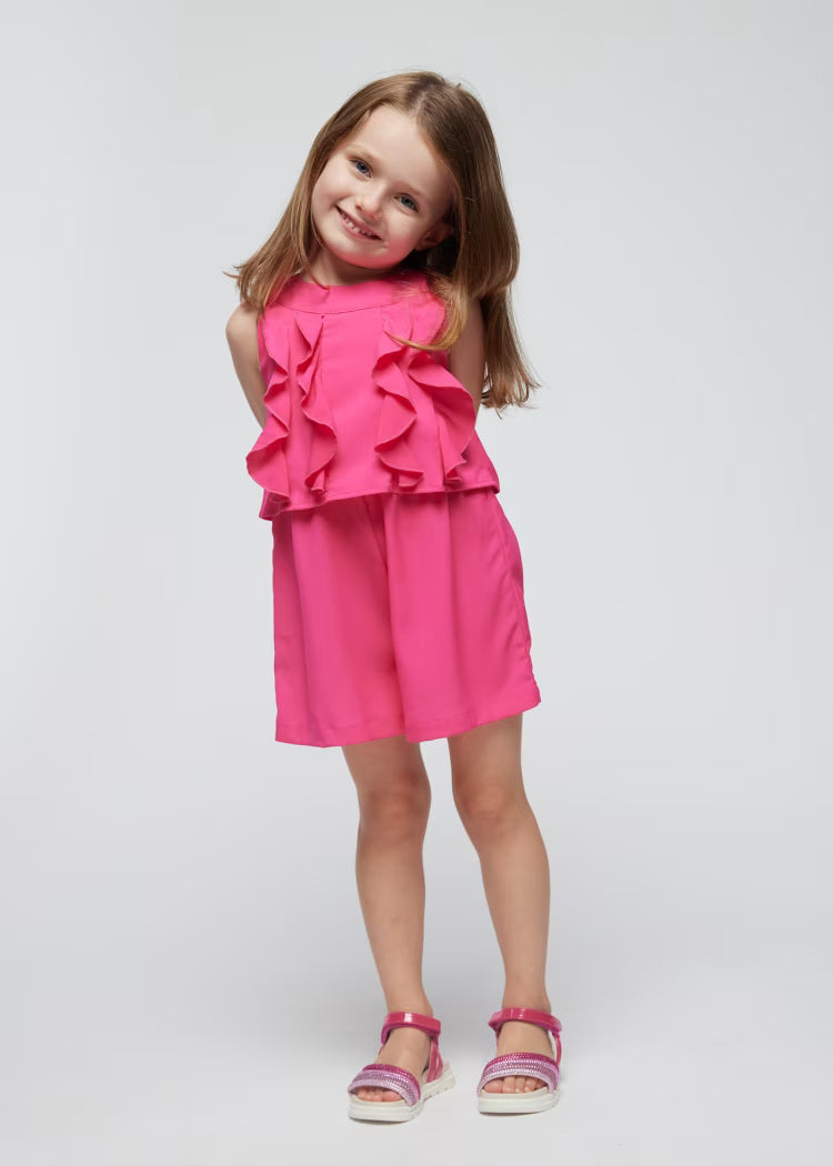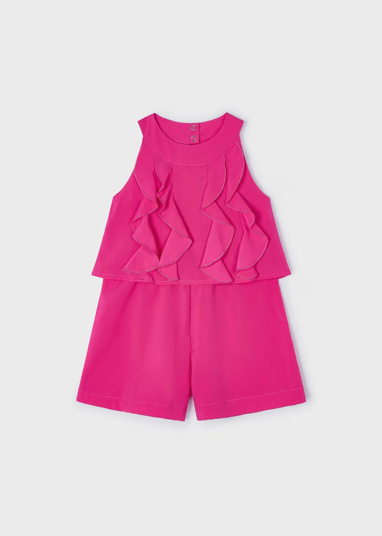 Tuta con volant bambina Mayoral tinta unita fucsia