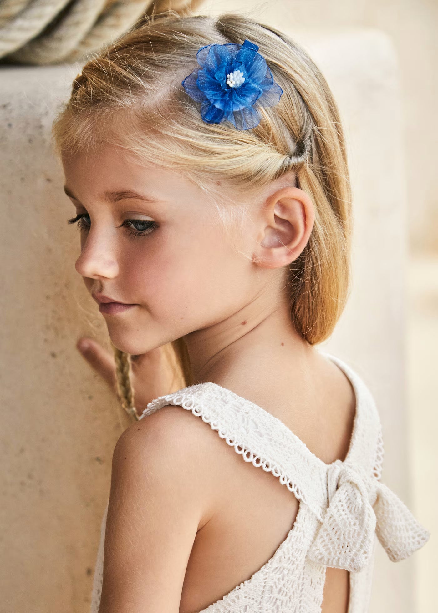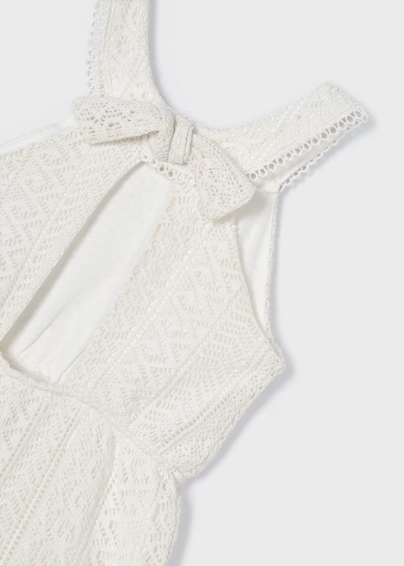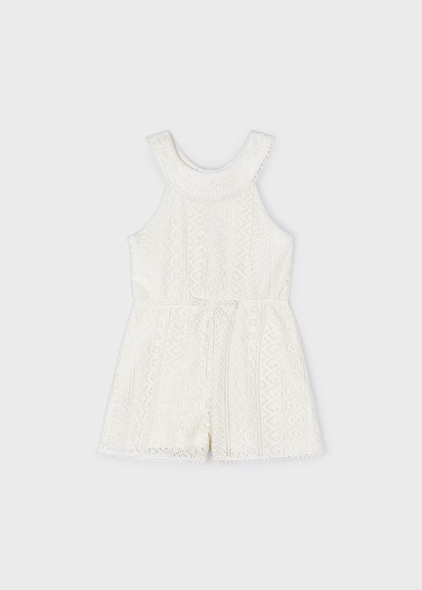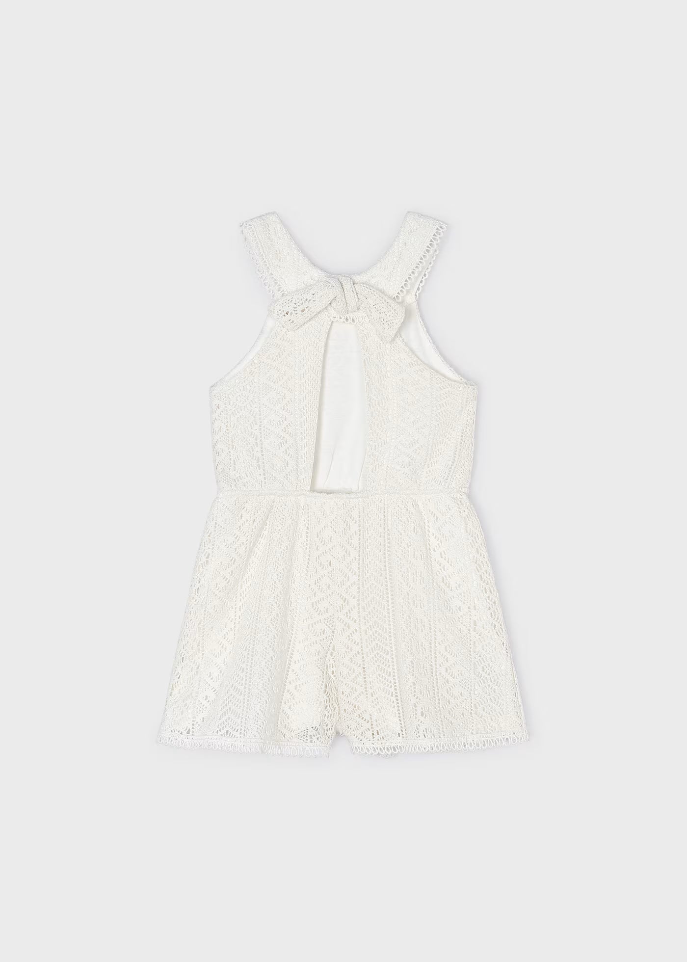 Tuta incrociata guipure fresco cotone bambina cecio