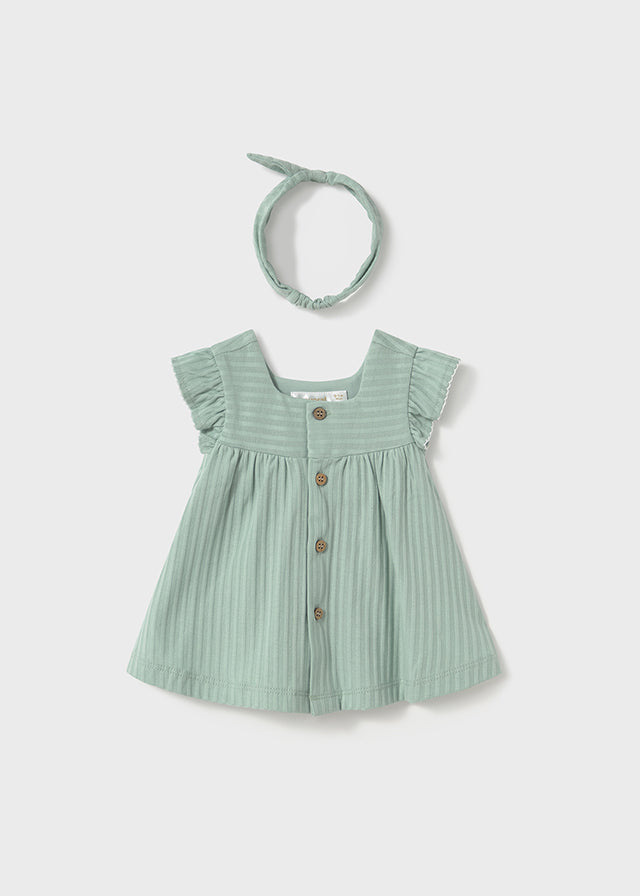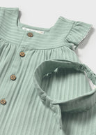 Vestito bretelle con volant per neonata. Colletto quadrato. Chiusura con bottoni nella parte anteriore.