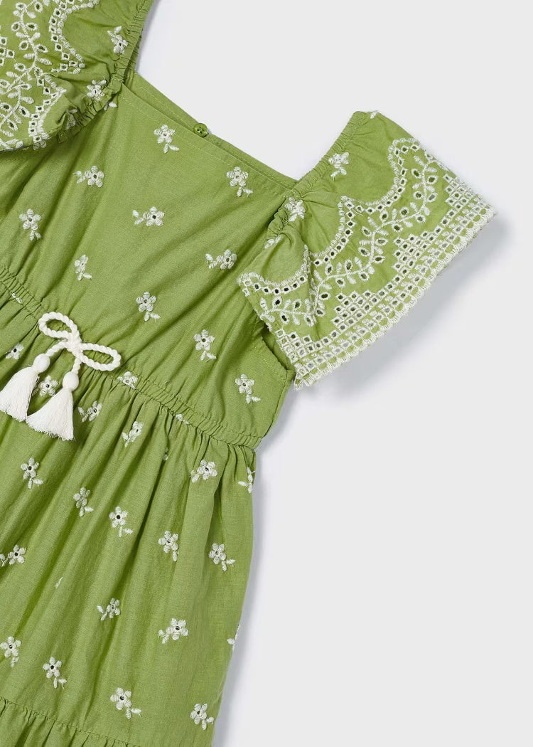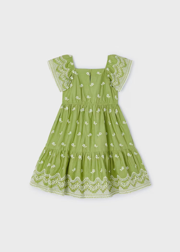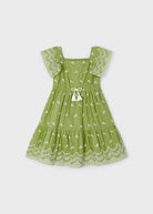 Vestito ricamo contrasti fresco cotone bambina Mayoral verde mela