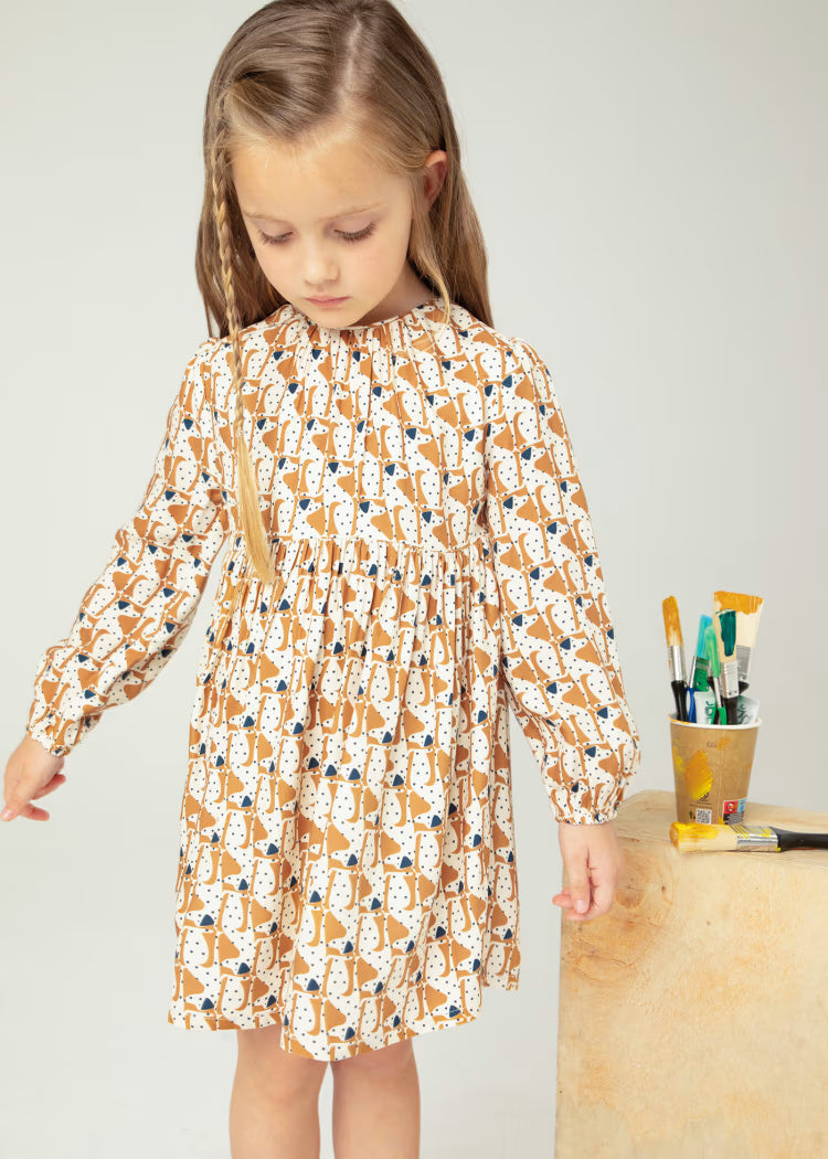 Vestito stampato morbido bambina Mayoral caramello fantasia cani