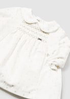 Vestito volant in velluto neonata Mayoral Newborn panna pois oro
